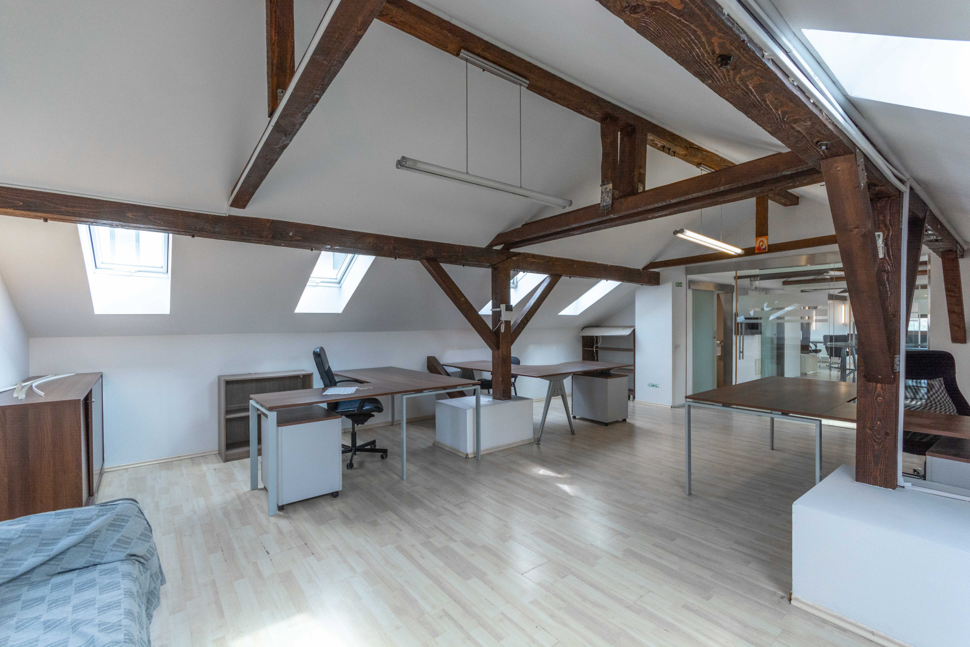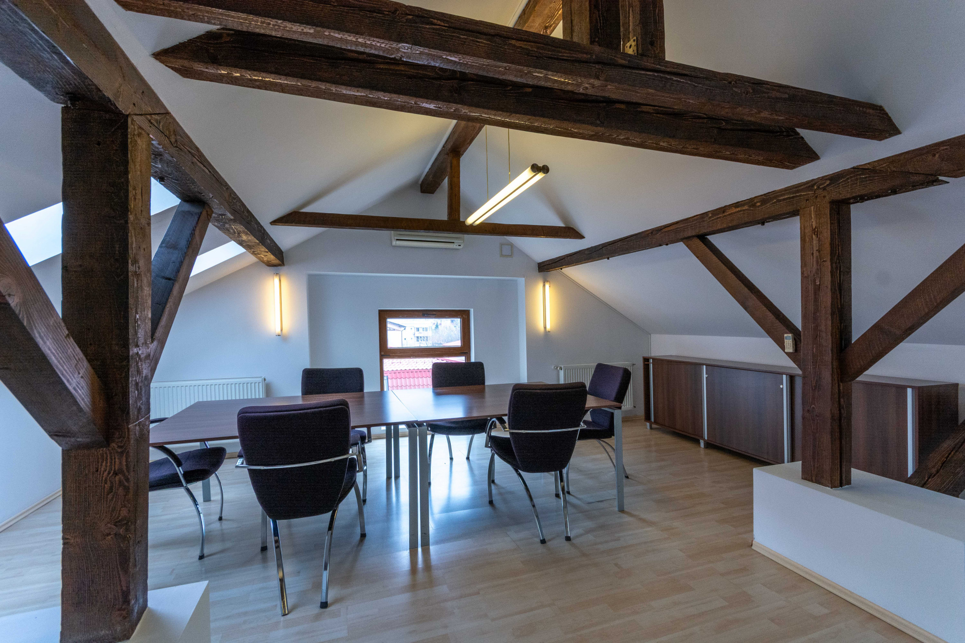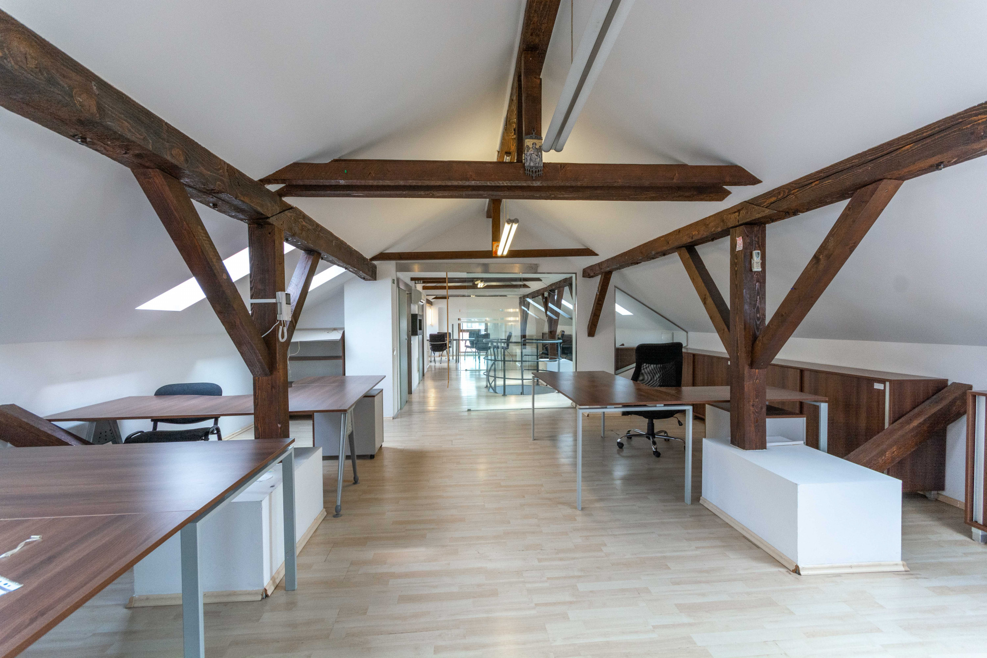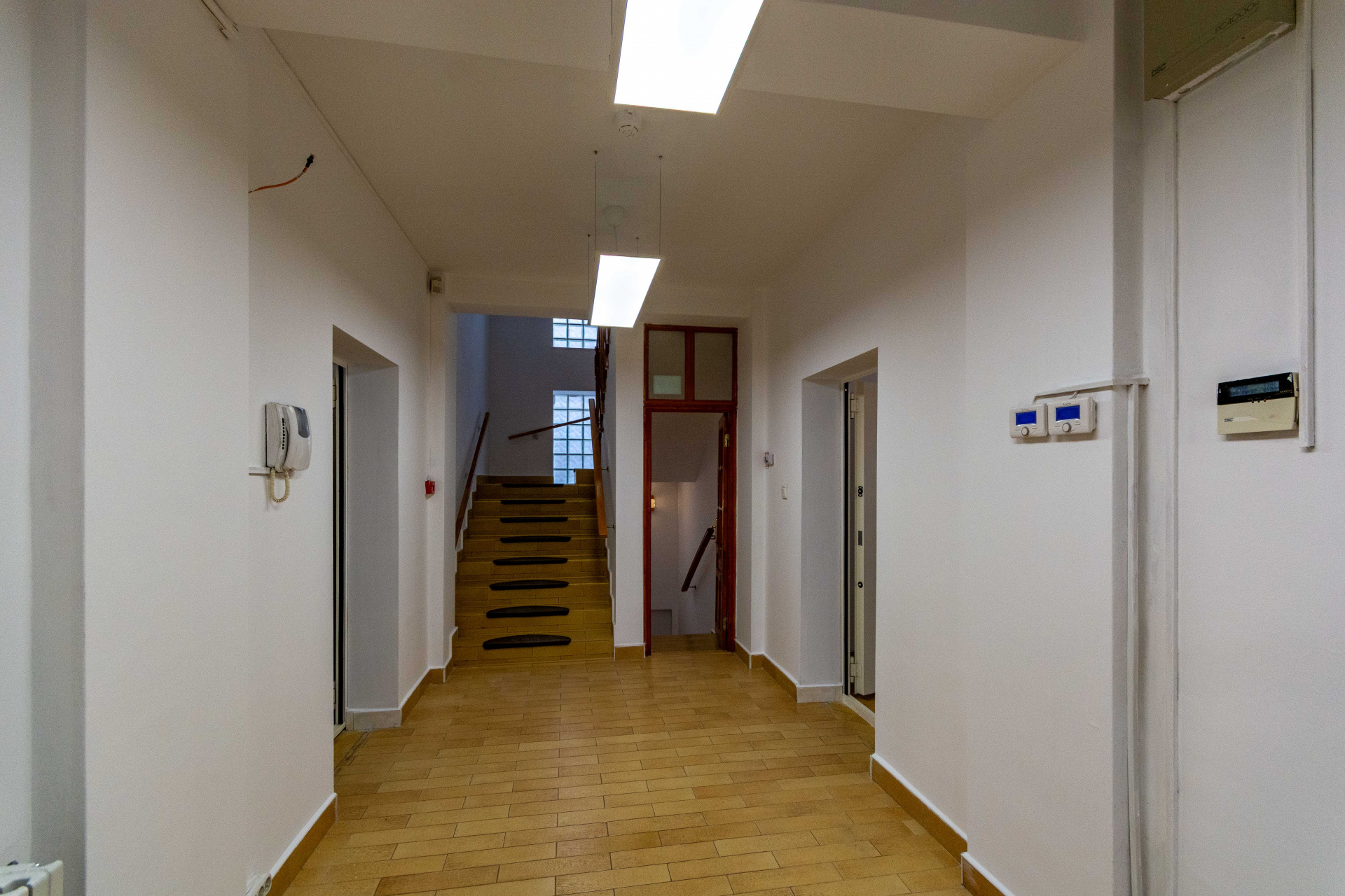 Multiple camere de dimensiuni variate, ideale pentru birouri individuale sau sali de intalniri.