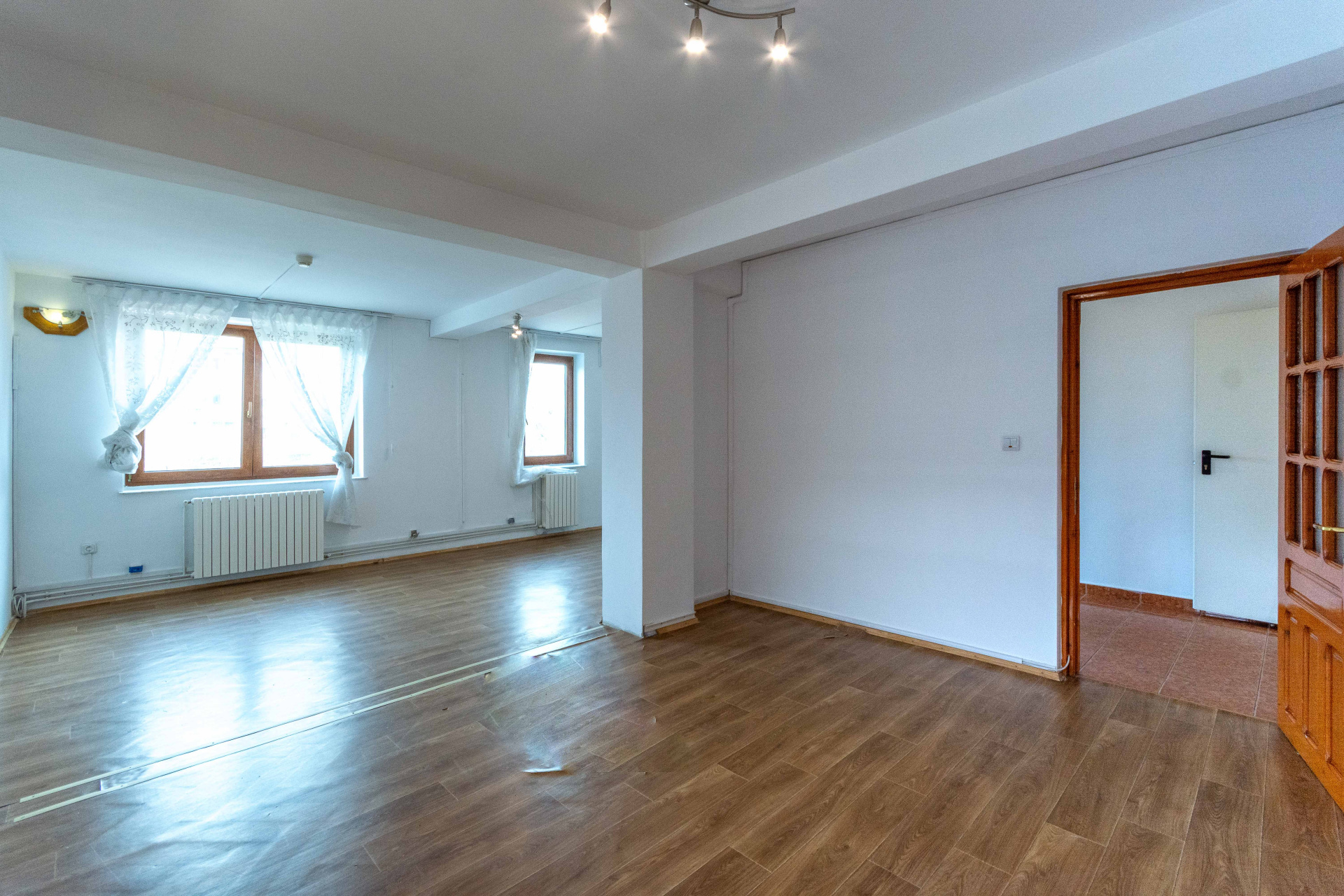 Proprietatea este integral igienizata, iar finisajele actuale sunt clasice (la predare, proprietatea va fi pregatita pentru utilizare, cu posibilitatea de adaptare in functie de cerintele chiriasului, proprietarii fiind deschisi la personalizare/compartimentare.