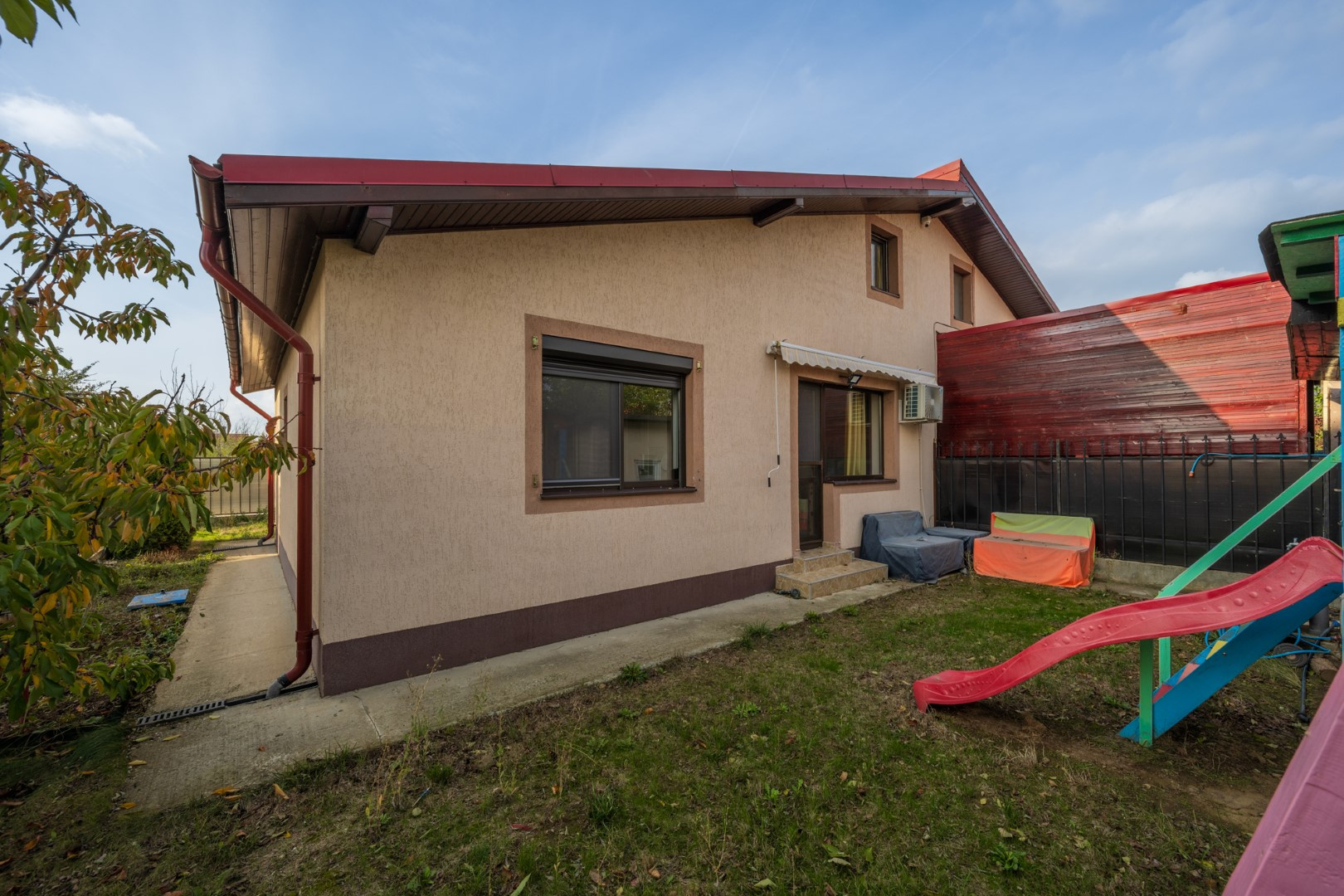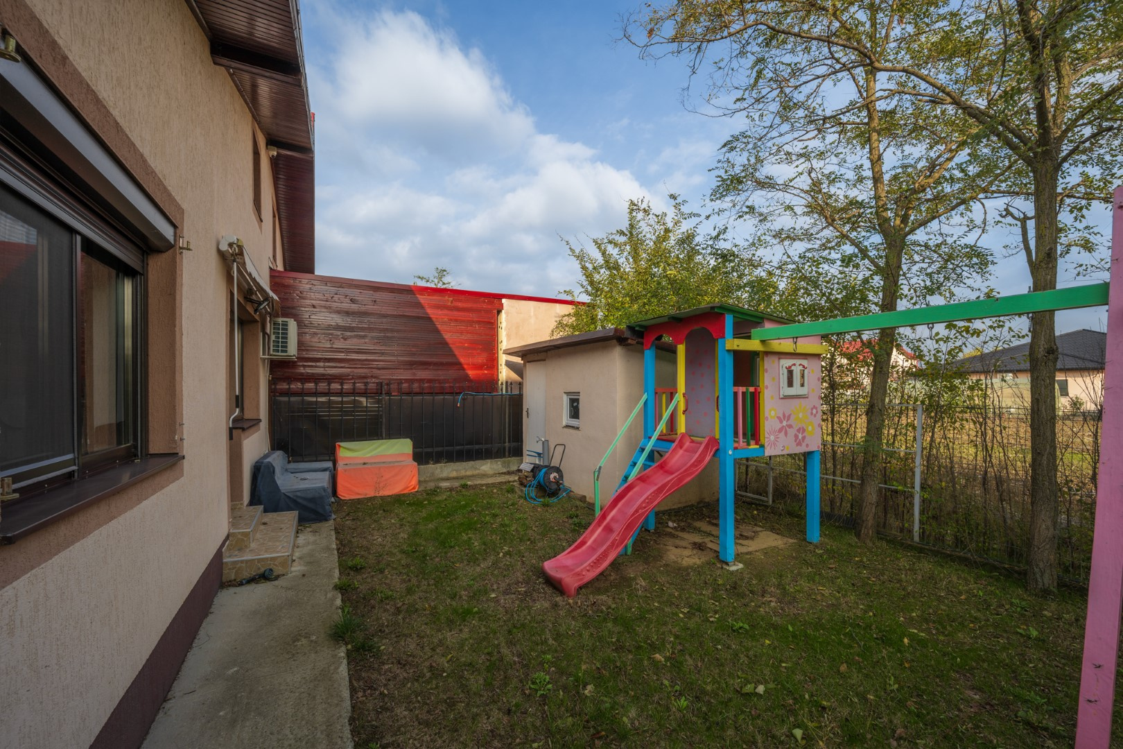 Lot perfect dimensionat, curte amenajata cu casuta de gradina si loc joaca.