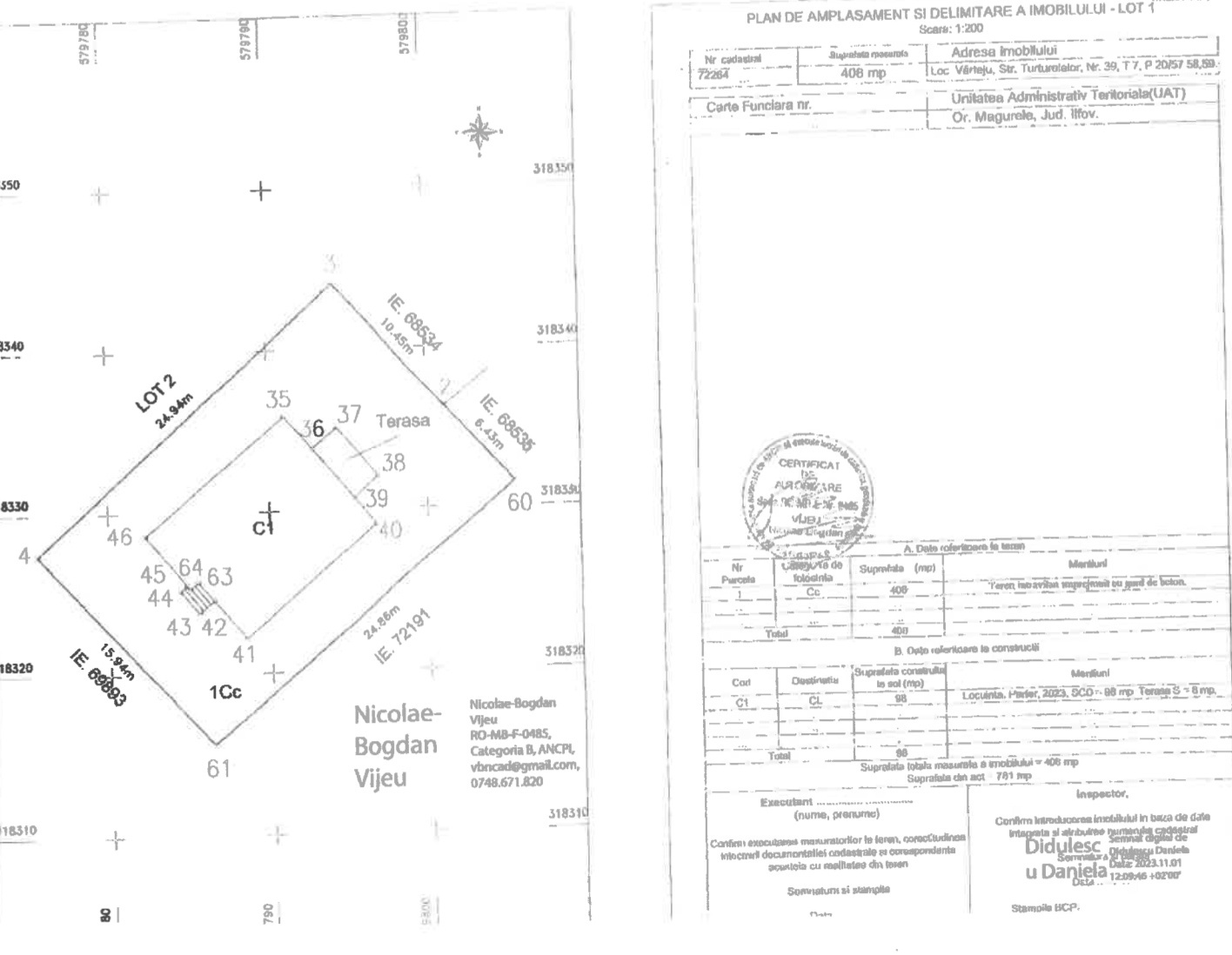 - teren: 408 mp, deschidere 17 ml