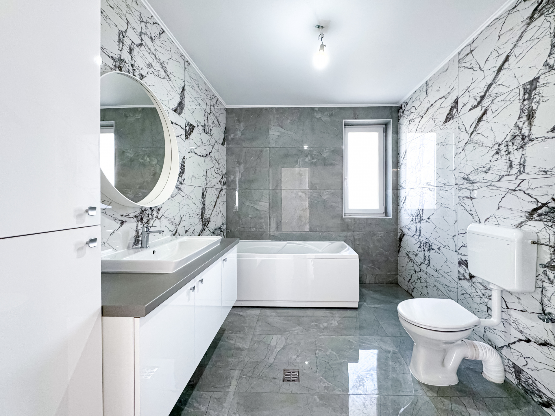 Dar si de parchet laminat de calitate, gresie si faianta nu doar moderna ci si practica, de obiecte sanitare alese cu grija.