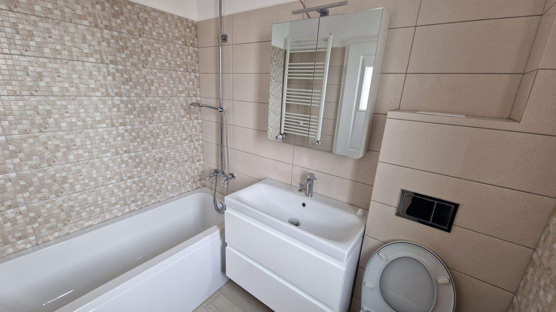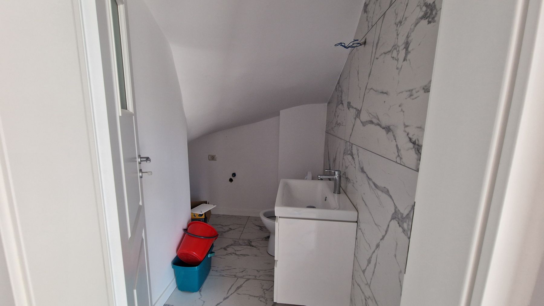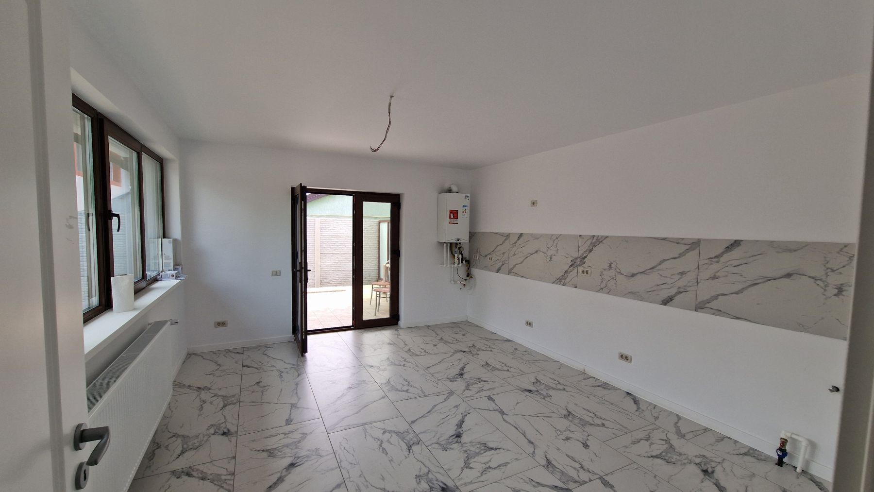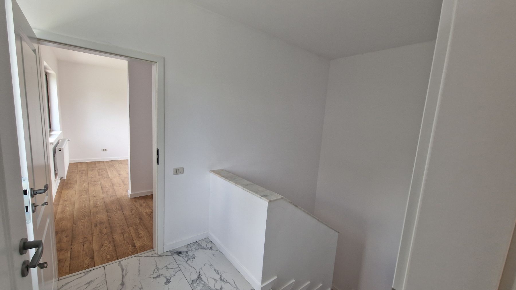 La parter, veți descoperi o bucătărie generoasa cu o suprafata de 20mp, unde aroma mâncărurilor delicioase se împletește cu râsetele familiei. În livingul spațios si generos cu o suprafata utila de 28mp, serile sunt petrecute în fața televizorului sau citind o carte bună, în timp ce copilul se joacă fericit. Urcând scările elegante, ajungeți la etaj, unde se află cele doua camere fiecare cu grup sanitar si o suprafata generoasa de 16mp. Iar când doriți să vă relaxați în aer liber, terasa de 18 mp vă așteaptă cu brațele deschise, oferindu-vă un colț de paradis unde să savurați cafeaua de dimineață sau să petreceți serile calde de vară.