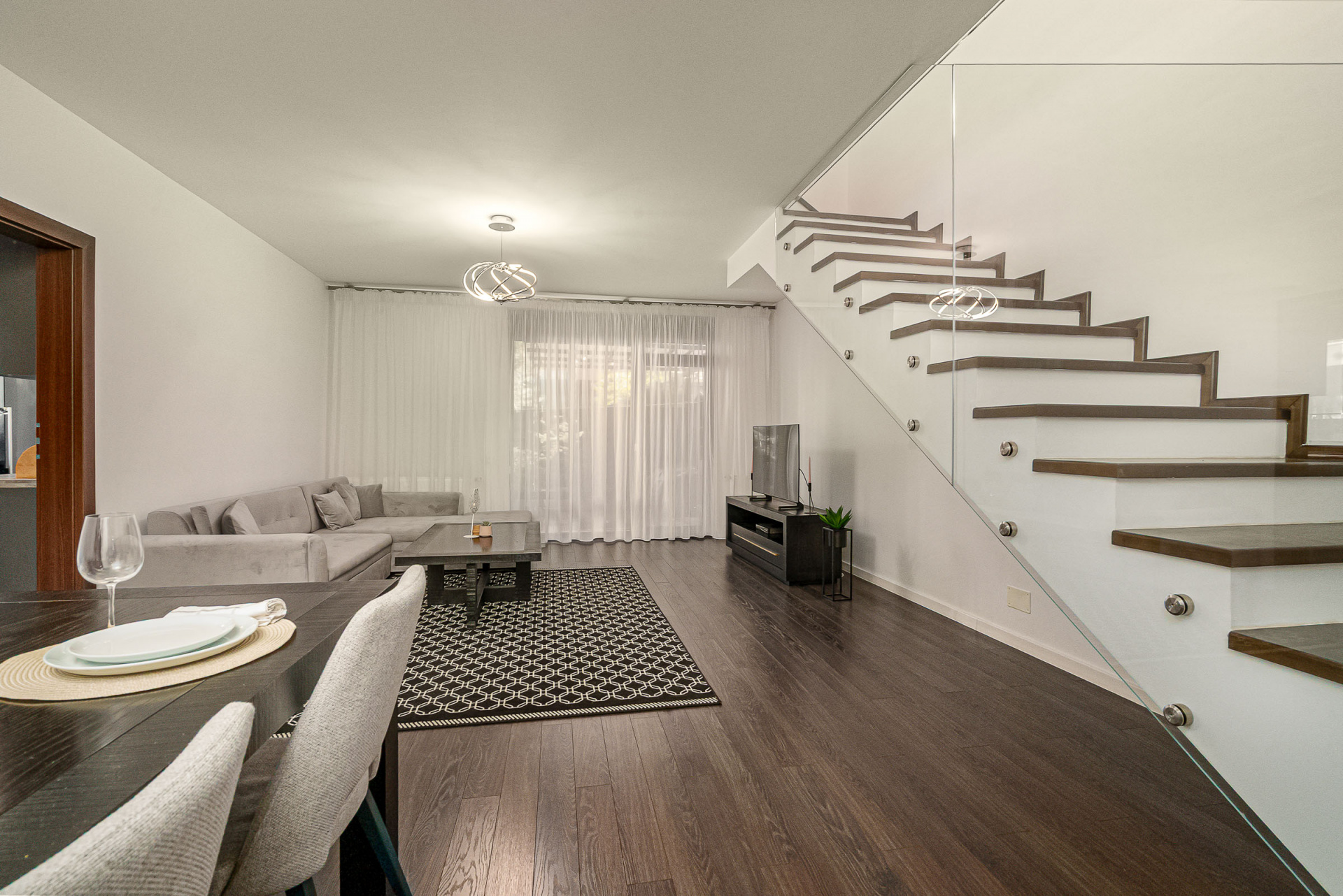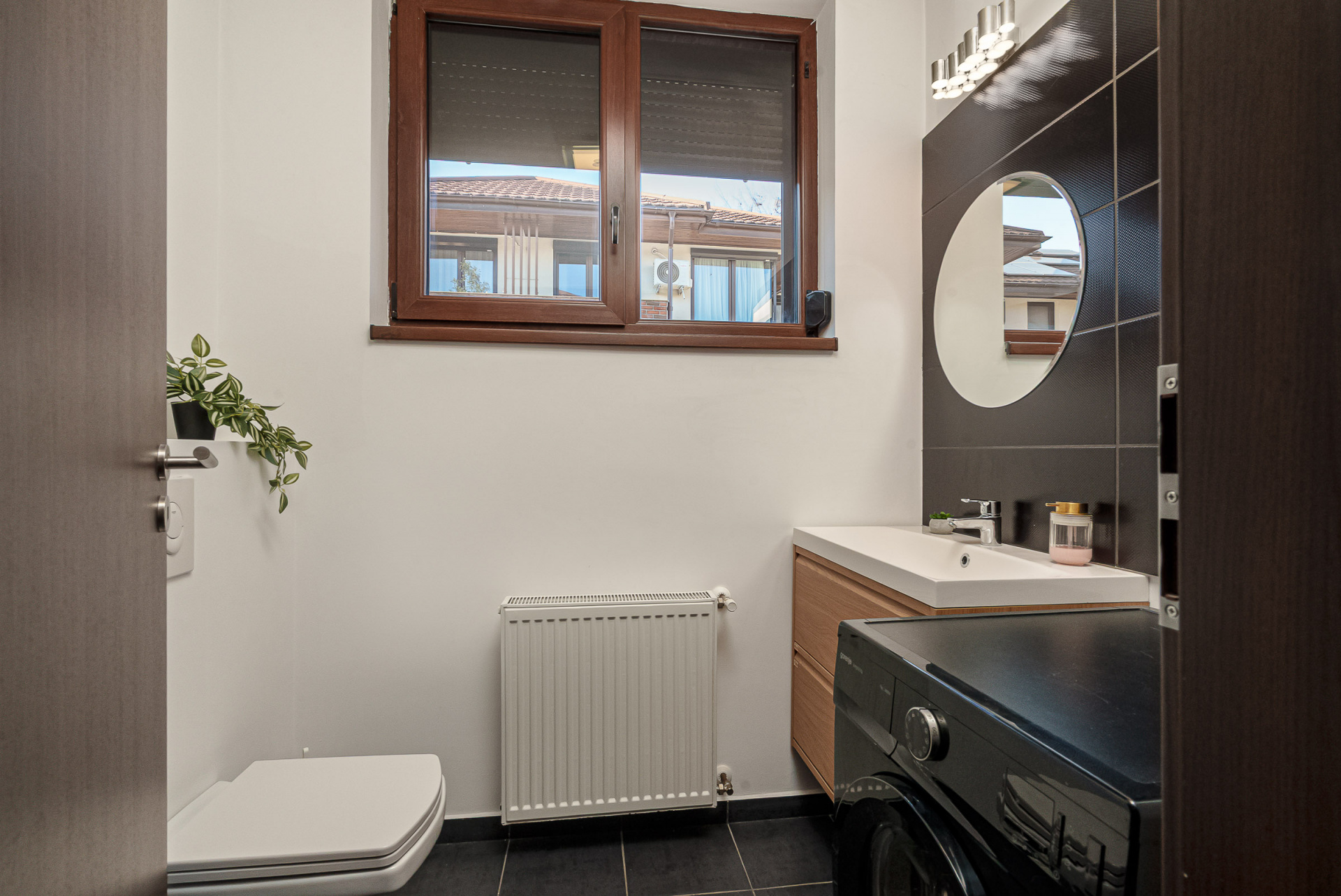 Interiorul este complet mobilat și renovate recent cu finisaje moderne, iar dotările precum centrala proprie, aerul condiționat, ferestrele PVC cu roluuri și sistemul de alarmă asigură un confort ridicat în fiecare zi.