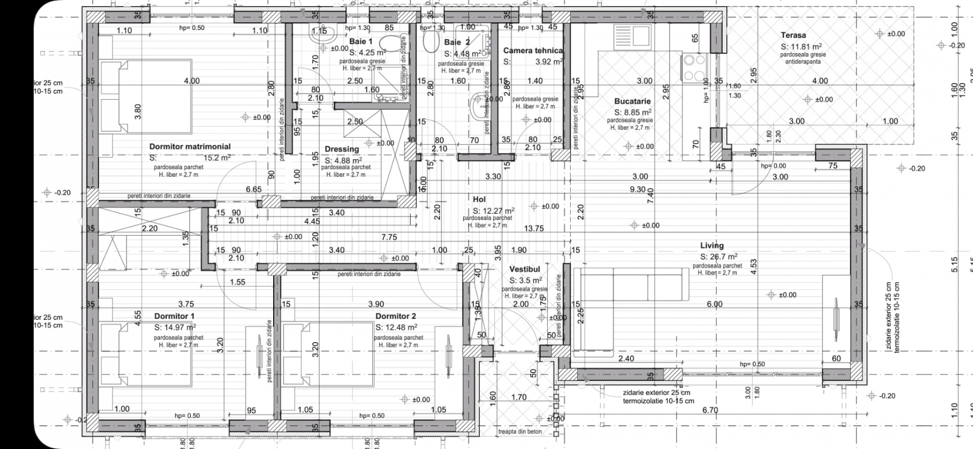 Dormitorul matrimonial beneficiza de un spatiu aditional destinat pentru dressing si baie proprie.