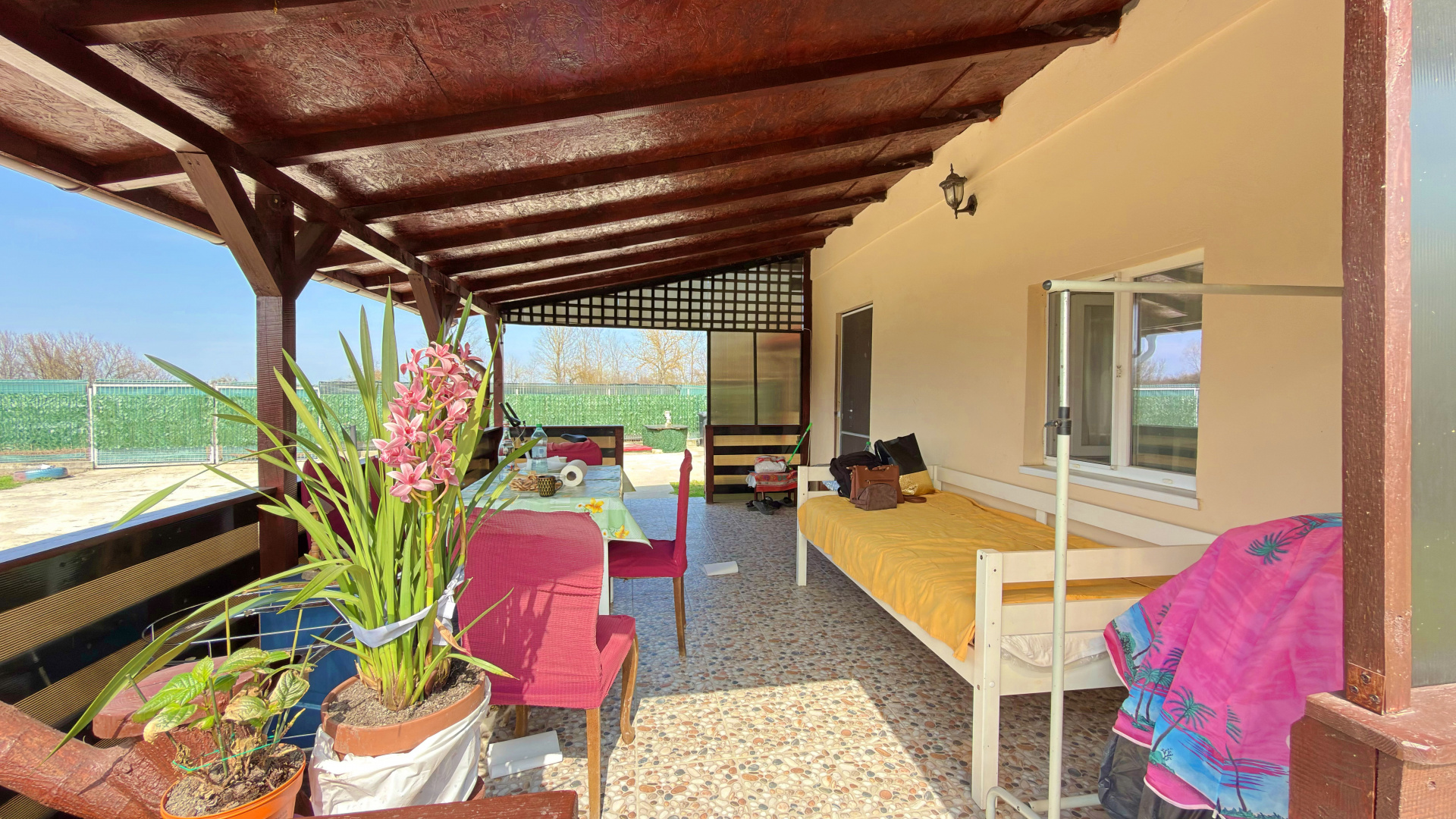 Proprietatea dispune de un teren generos (3552 mp), perfect pentru grădinărit, relaxare sau amenajarea unui spațiu de recreere. Locuința este formata din 2 corpuri de casa (unul din caramida si celalalt din panouri tip sandwich, ambele cu fundatie de beton), oferind camere luminoase (3 dormitoare), bucătărie, terasa și 2 bai, fiind potrivită atât pentru locuit permanent, cât și ca reședință de vacanță.