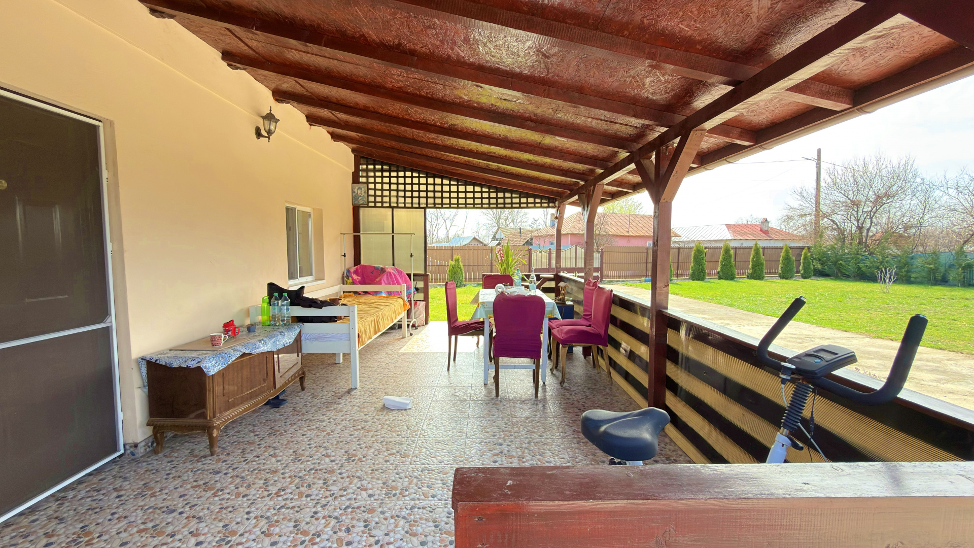 Casa se vinde complet mobilata si utilata, beneficiază de utilități esențiale (curent, apa si canalizare), hidrofor si aspersoare de udat gazonul, 2 camere video de supraveghere și acces facil la drum principal, magazine și alte puncte de interes din zonă. Curtea largă oferă multiple posibilități de amenajare, inclusiv foișor, livadă sau spațiu pentru animale.