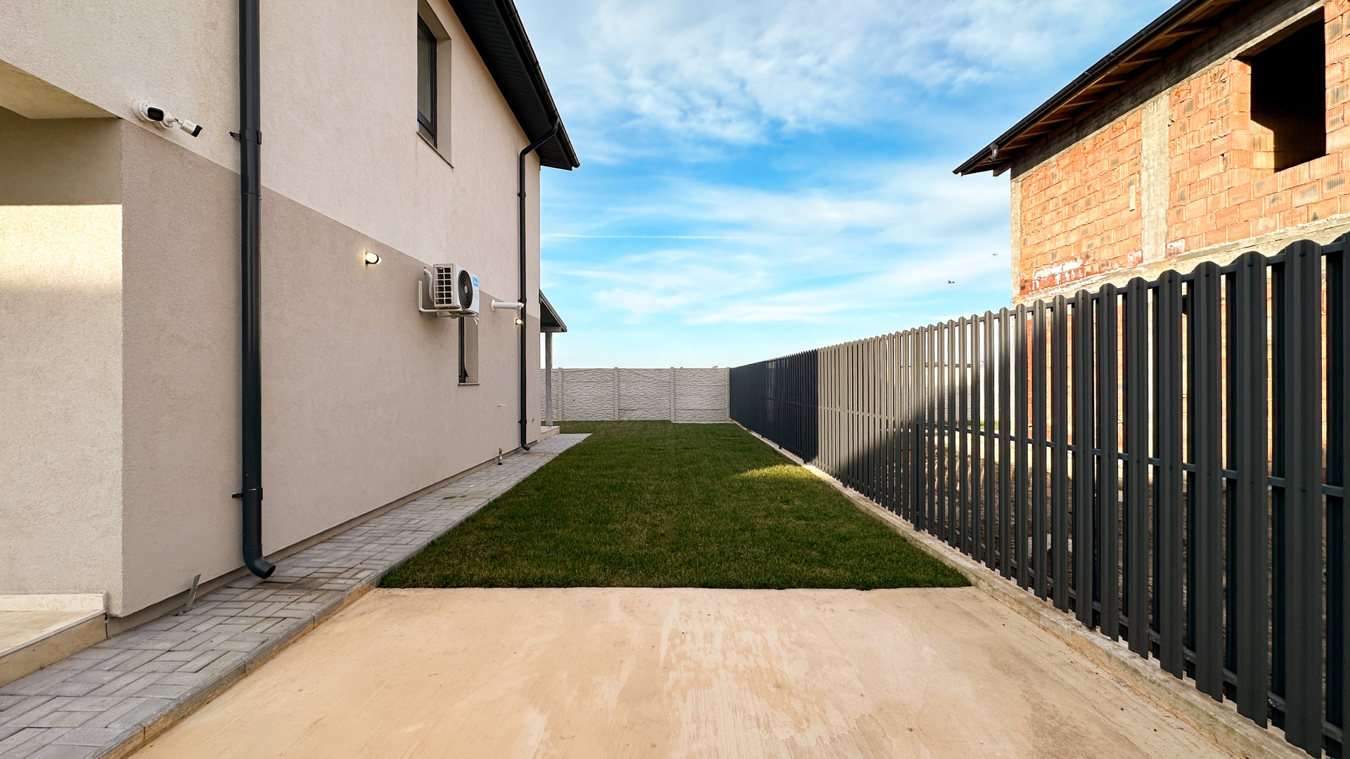 Terenurile aferente proprietăților au suprafețe cuprinse între 257 și 323 mp (prețul afișat este pentru varianta de 257 mp), iar amprenta casei este de 71 mp. Curtea permite acces auto și parcare în interiorul proprietății, prin poartă dedicată.