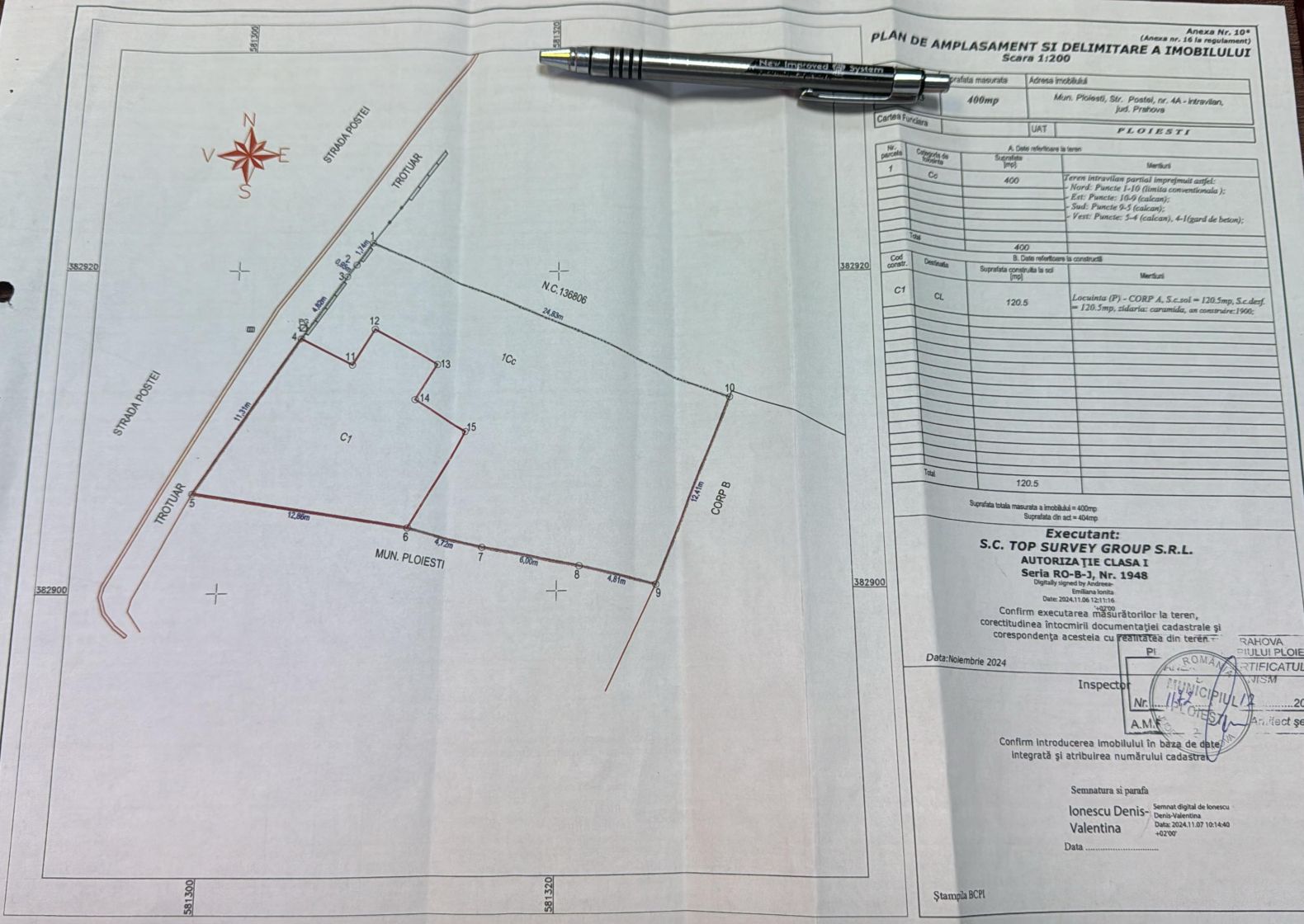 OFERTĂ CU 0% COMISION PENTRU CUMPĂRĂTOR!!! Casă de vânzare în Ploiești pe strada Poștei la nr. 4A, zonă ultracentrală, lângă intersecția : str. Nicolae Bălcescu cu str. Ștefan Greceanu și str. Stadionului, la doi pași de Prahova Plaza, Stadionul Ilie Oană, Muzeul Național de Istorie, Spitalul Județean Buna Vestire, Muzeul Petrolului, Judecătoria Ploiești, Teatrul Toma Caragiu, Afi Ploiești și multe altele. Imobilul edificat în jurul anului 1900 se află în zonă culturală a orașului dar nu figurează în lista monumentelor de cult (există adresa scrisă în acest sens), este construit din cărămidă ( 3 bucați și jumătate ), dispune de 4 camere cu o amprentă de 121 mp la sol și necesită renovarea totală a tencuielilor și tâmplăriei de lemn (uși și geamuri). Terenul total în proprietate este de 400 mp cu deschidere de 19 m la strada Poștei ( 11 m calcan și 8 m gard) existând acum doar poartă acees pietonal, dar este suficient loc și pentru poartă acces auto odată cu renovarea și reamenajarea gardului stradal. Ideal pentru investiție, rezidență sau spațiu comercial / clinică medicală / birouri, etc.