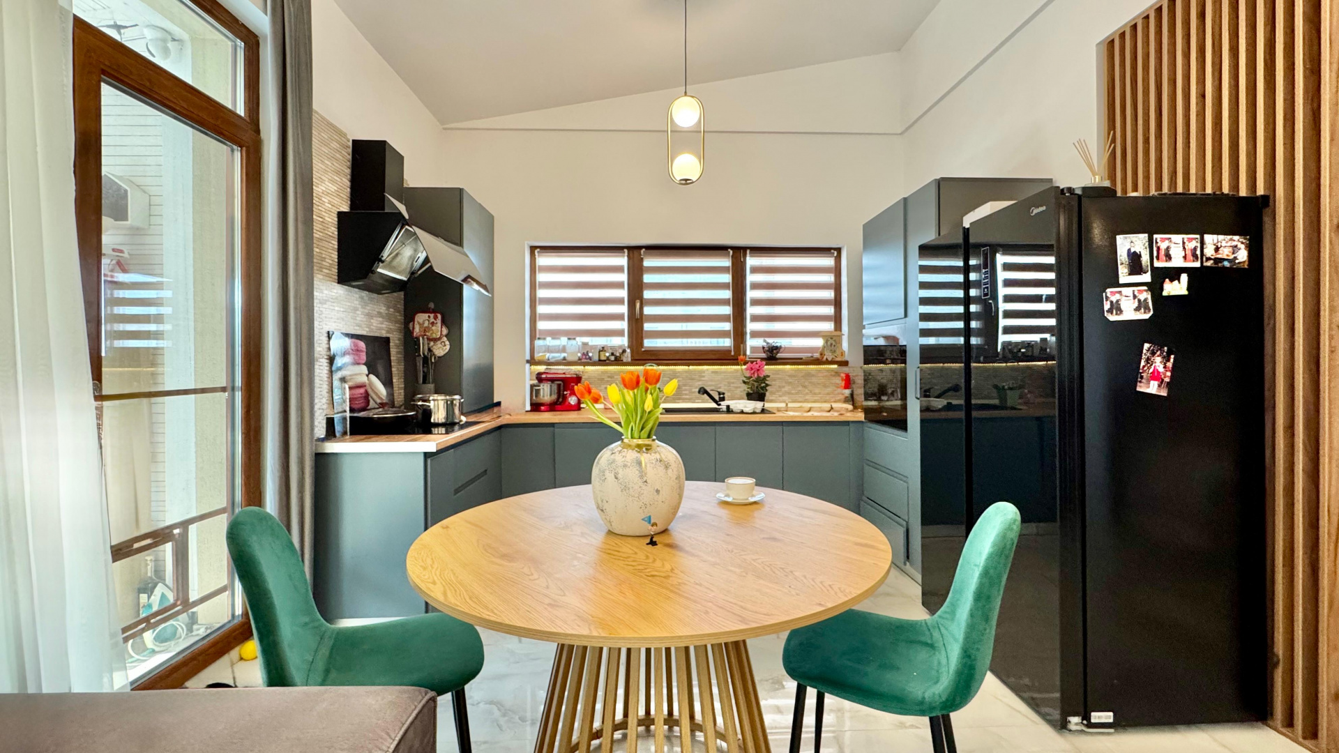 Dispune de 4 camere la care se adauga o terasa inchisa in sticla. Incalzirea se realizeaza prin pardoseala cu ajutorul unei centrale termice prin condensare.