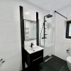 Băile beneficiază de finisaje contemporane cu plăci ceramice de format mare, iar pardoseala este placată cu marmură.