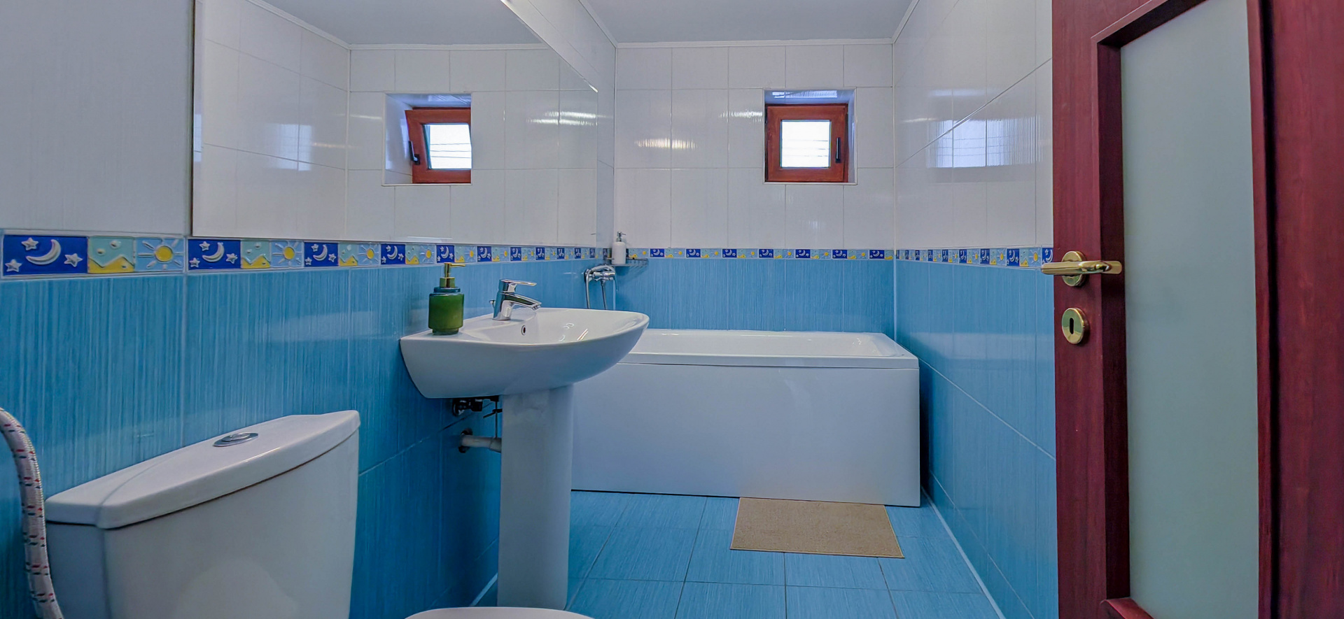 3 băi moderne: finisaje premium cu faianță în tonuri alb-gri, dotări complete