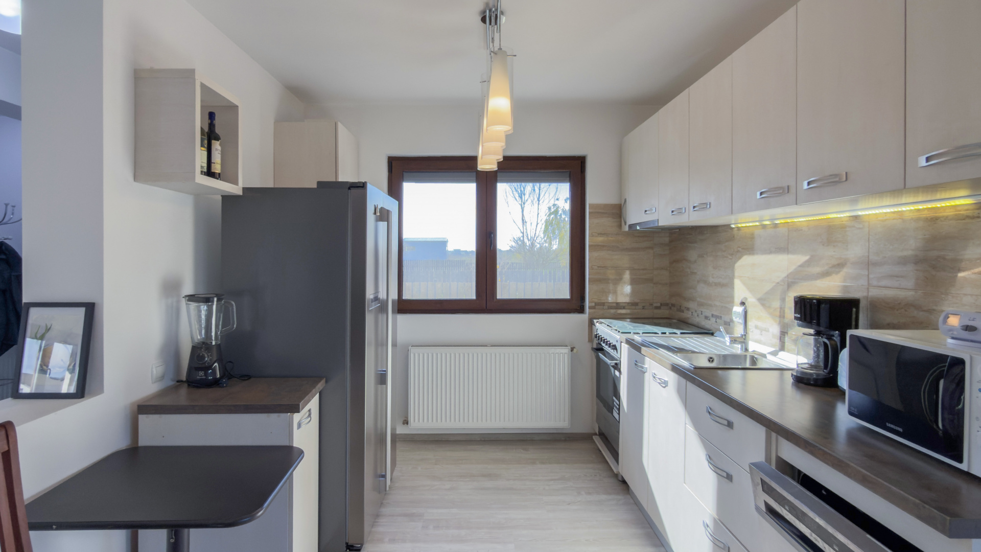 Vila , construita pentru uz personal , beneficiaza de finisari moderne si de folosirea de materiale scumpe si de calitate . Geamuri tripan cu tamplarie de lemn , rulouri electrice la parter ,bucatarie echipata .
