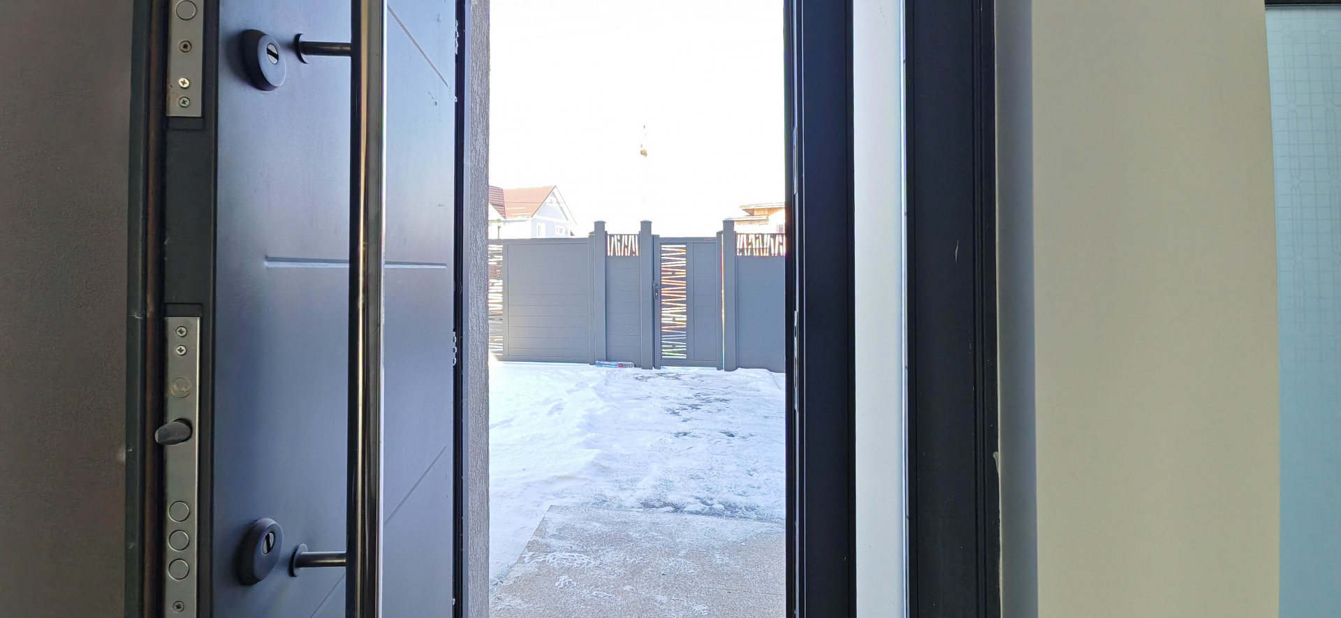 Ferestre mari, vitrate, tamplarie PVC Salamander, culoare gri, cu geam tripan – lumina naturala abundenta si eficienta energetica