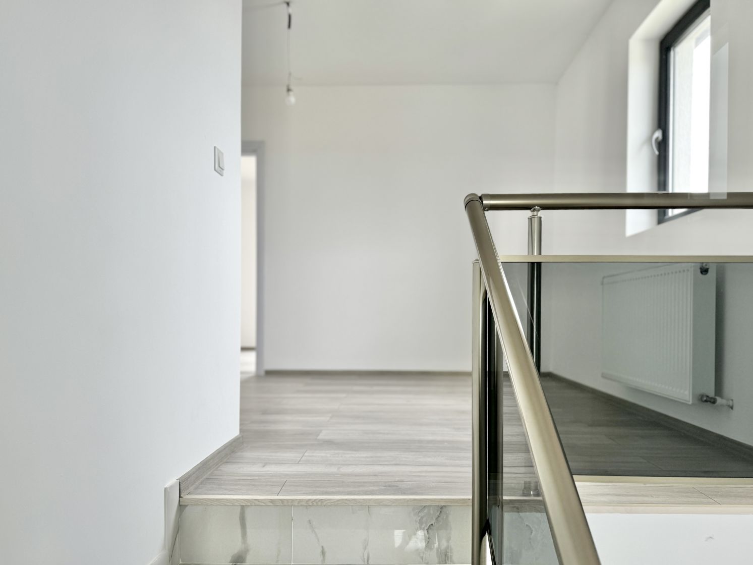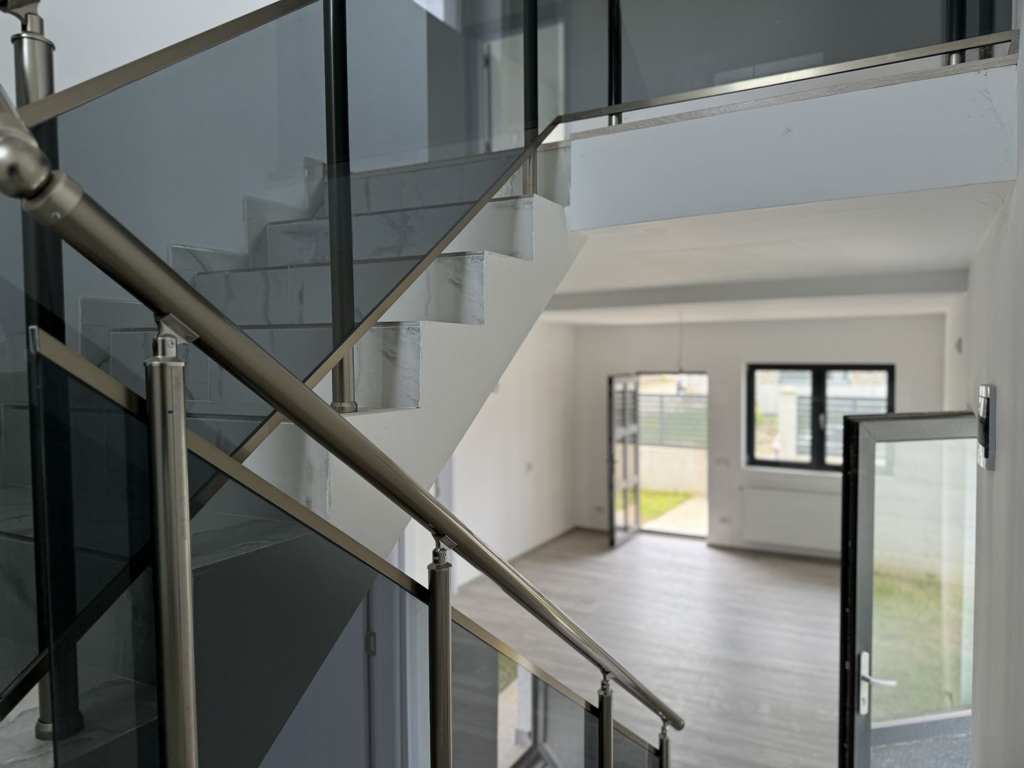 -etaj: trei dormitoare spatioase, o baie mare cu cada, un balcon pe doua dormitoare si o zona de dressing sau birou in dreptul scarii.