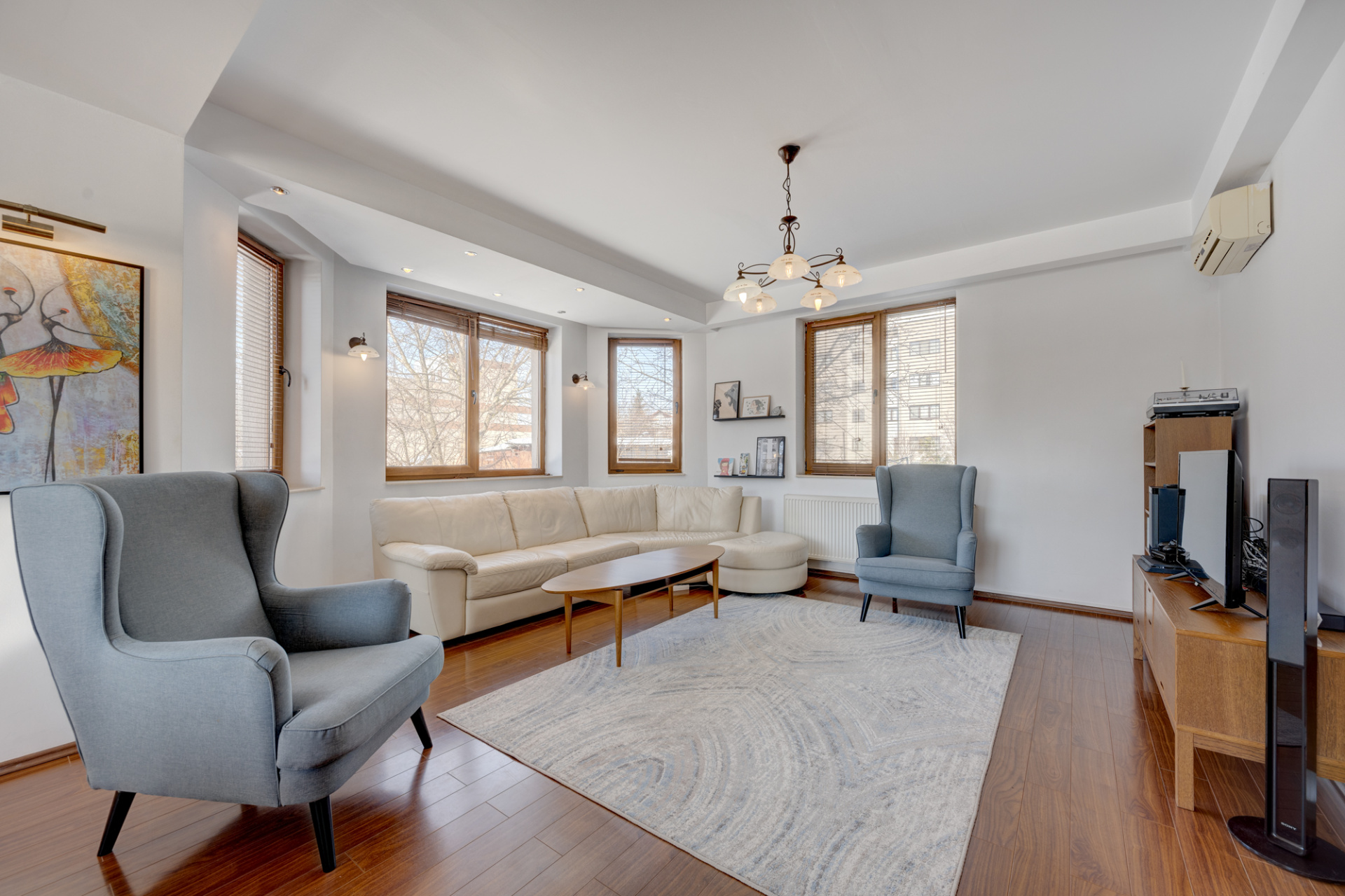 La subsol (19,7mp) este o camera tehnica pentru centrala si un spatiu pentru depozitare amenajat cu rafturi. Bucataria este inchisa, complet mobilata si utilata FRANKE cu toate electricasnicele necesare: plita, cuptor, hota, cuptor cu microunde, masina de spalat vase, frigider, toate incorporate. Tot mobilierul de bucatarie este din lemn masiv. Baia parterului este amenajata cu cabina de dus si beneficiaza de fereastra. Livingul este generos, cu o suprafata de 40 mp si este impartit in doua zone, o zona de dinning cu acces catre terasa exterioara si o zona de relaxare.
