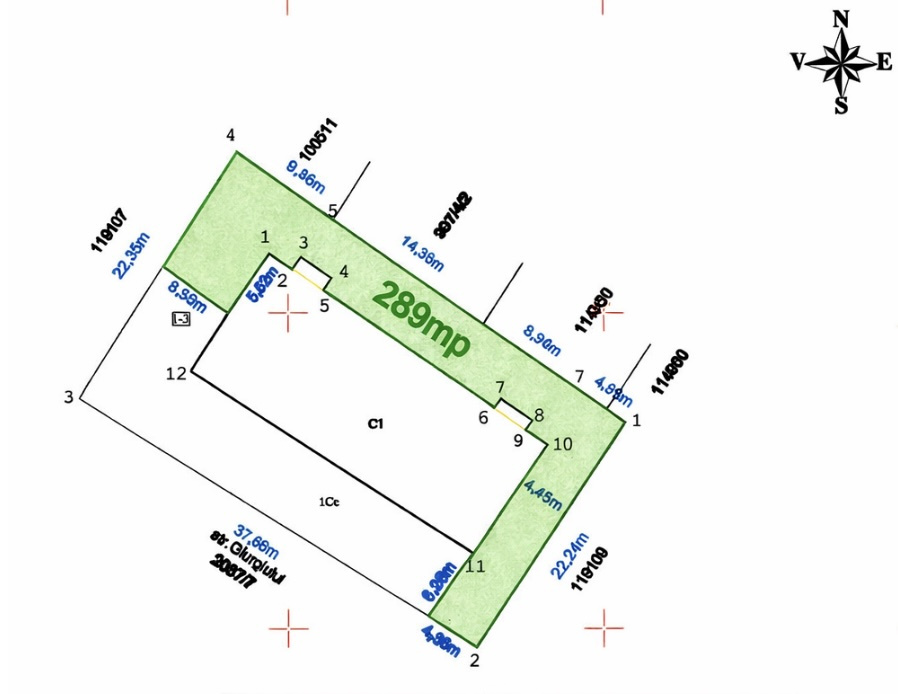 Suprafață totală construită: ~154.7 mpTeren proprietate exclusivă: 289 mp cu acces din ambele laturi