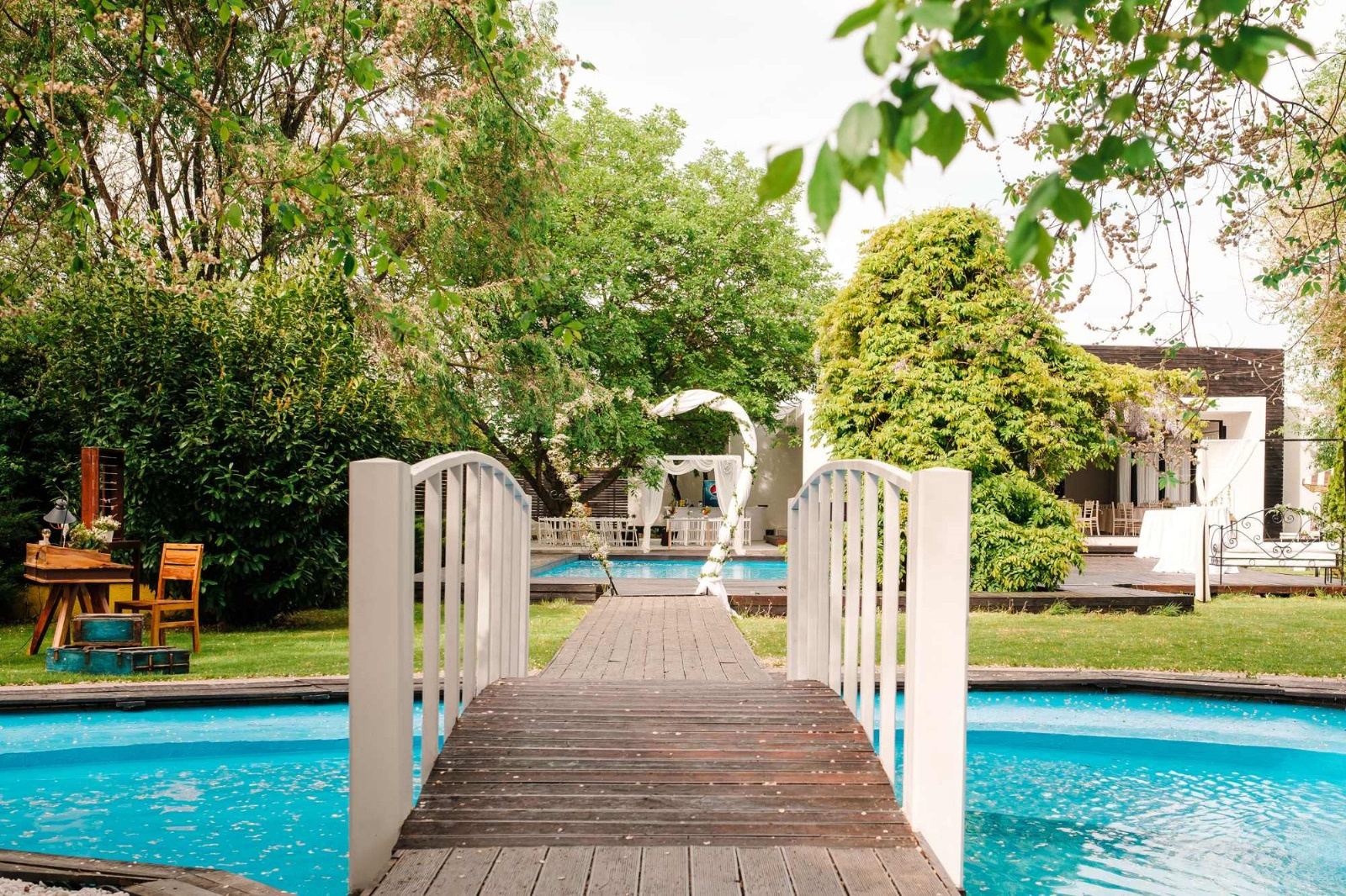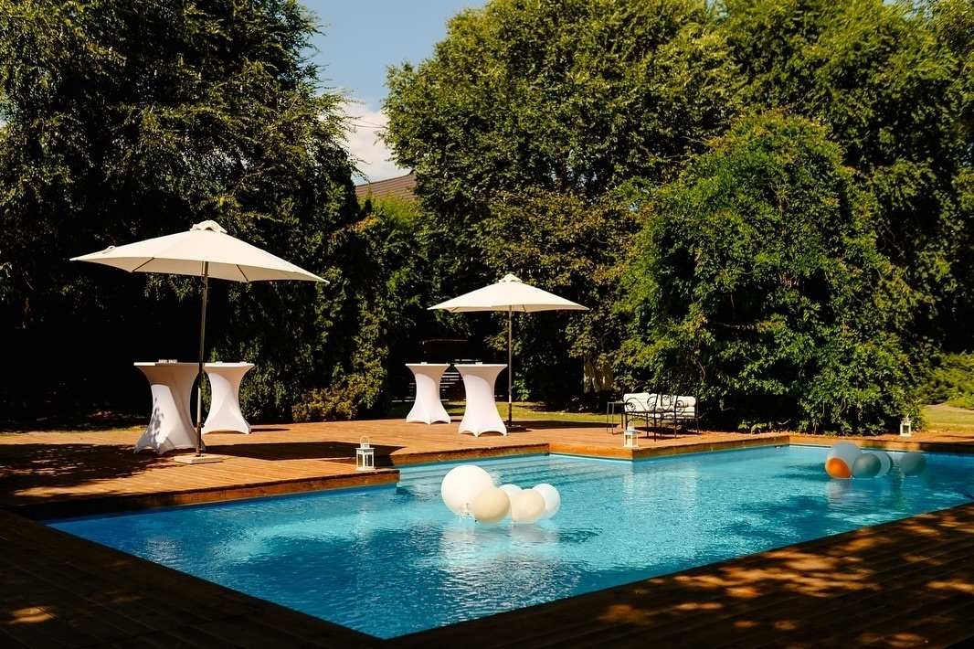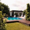 Piscina de 12x5 m beneficiaza si de o zona de terasa/ relaxare, deck lemn.