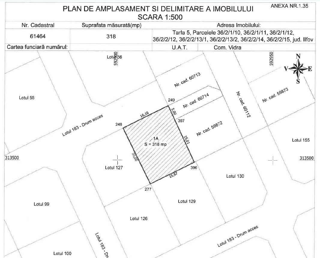 Teren intravilan de vânzare în comuna Vidra, situat într-o zonă liniștită de case, aflată în plină dezvoltare rezidențială – ideal pentru construcția unei locuințe individuale.