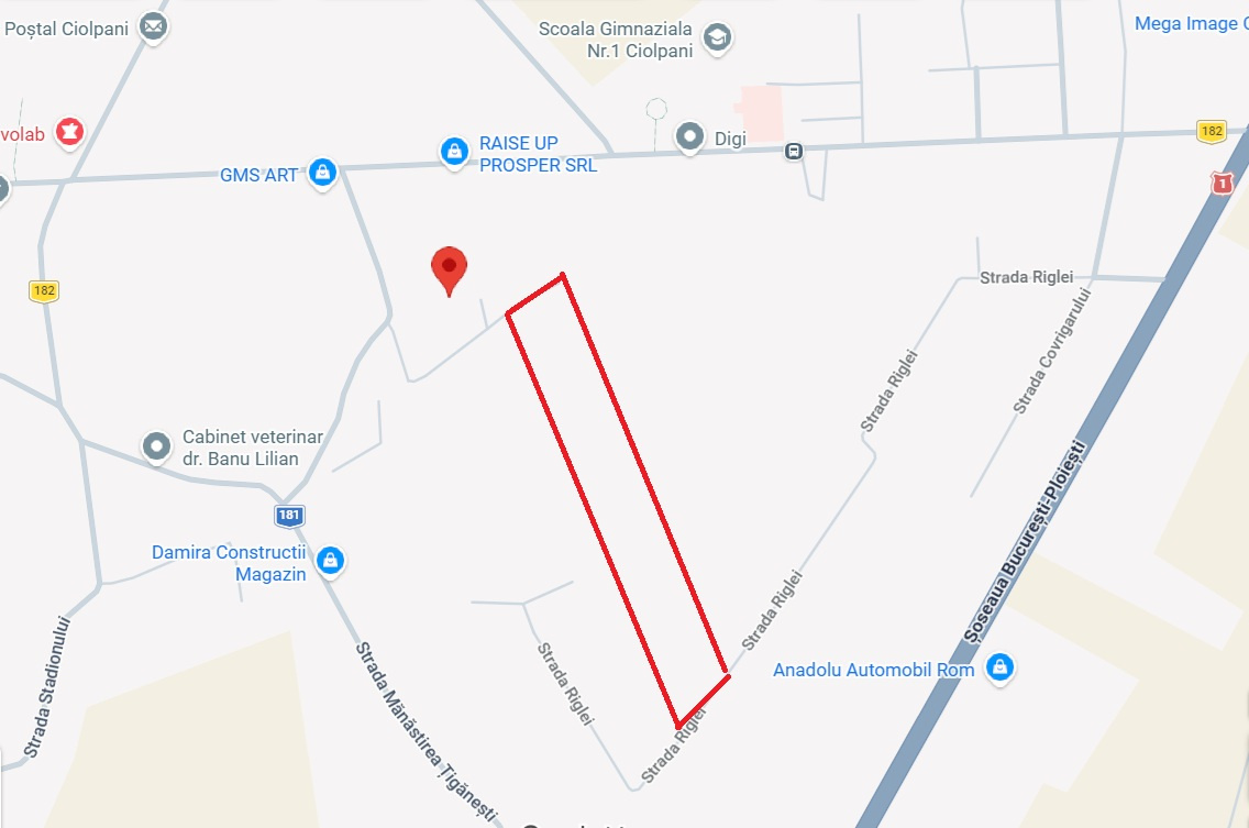Vă propun spre vânzare un teren intravilan situat în zona centrală a localității Ciolpani, pe Strada Lacului nr. 16 – o zonă în plină dezvoltare, apreciată pentru accesul rapid către București și proximitatea față de DN1.