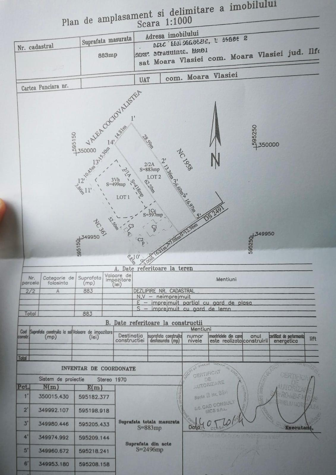 Suprafața totală este de 883 mp, oferind spațiul ideal pentru construirea unei locuințe permanente, a unei case de vacanță sau chiar a unui proiect rezidențial deosebit.