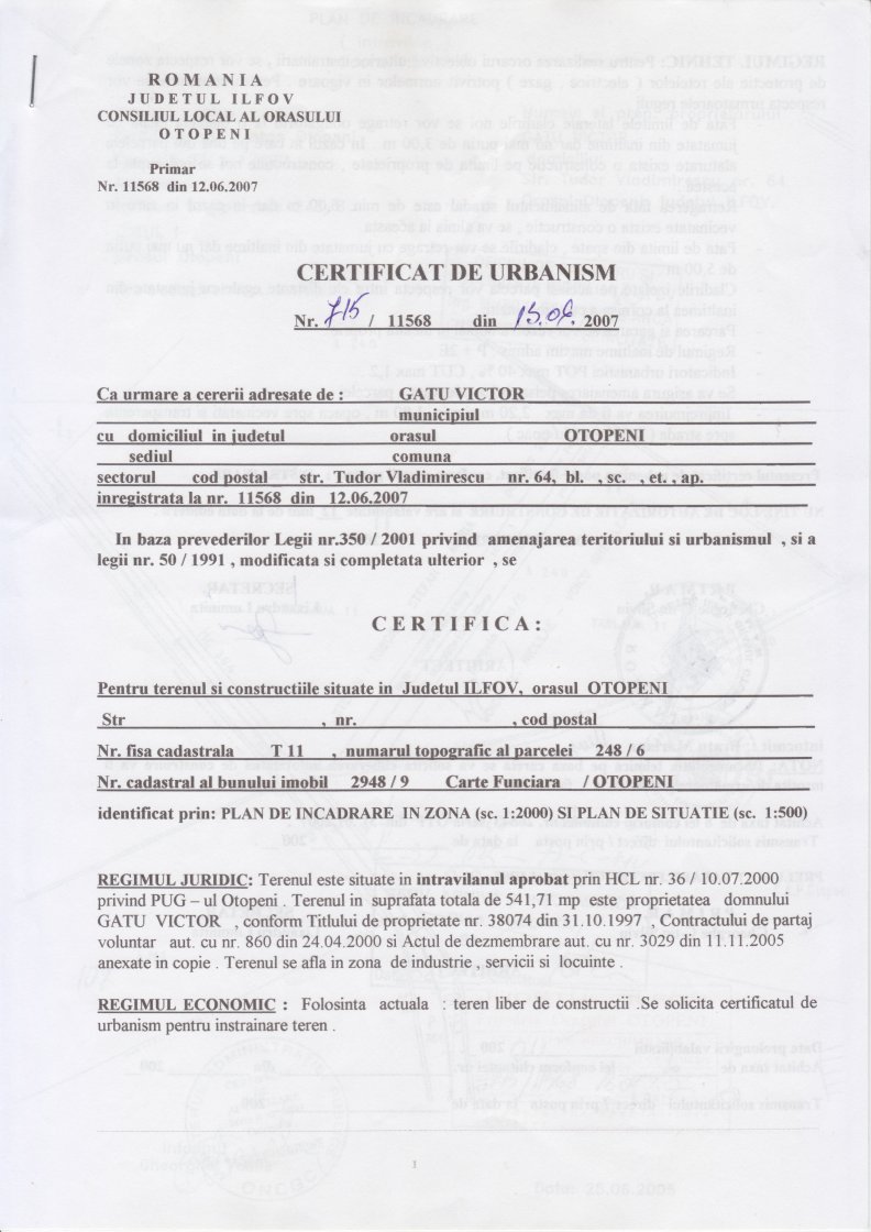 Vă propun spre achizitie un teren intravilan situat în Otopeni, zona Odai, acces din Str. Constantin Brâncoveanu (asfaltată). Comision 0% cumparator.