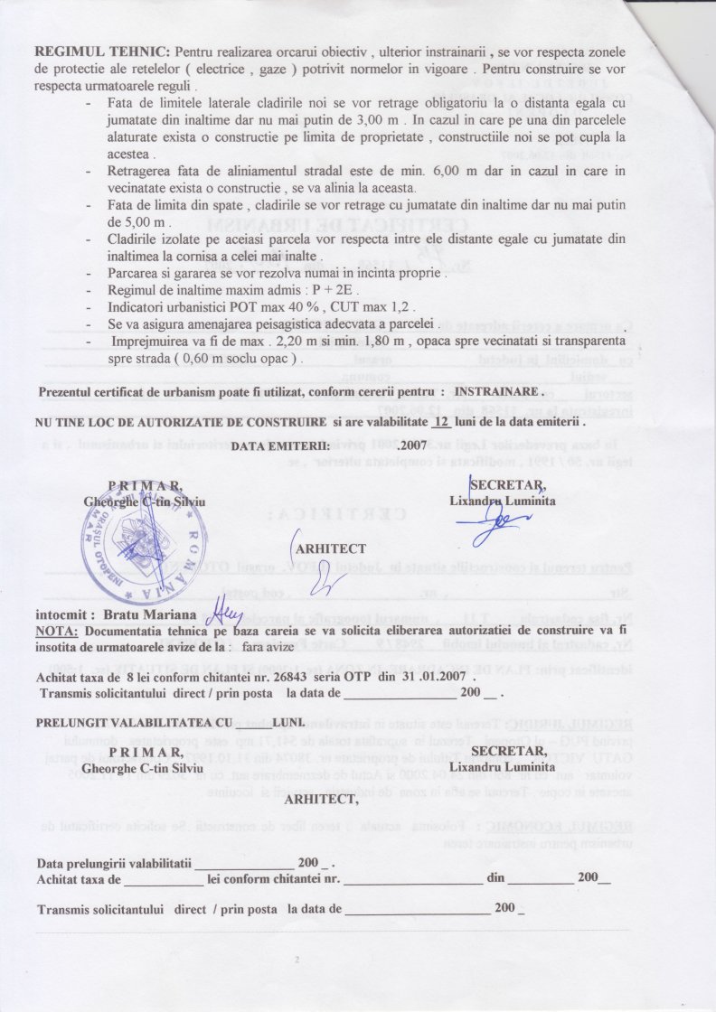 Terenul este ideal pentru constructia unui duplex, avand 664 mp din care 122 mp drum de acces si 542 mp teren pentru constructii cu 17.5 m lățime și 31ml deschidere la drumul de servitute cu 6m latime. Urbanism: P+2E, POT max 40%, CUT max 1,2.